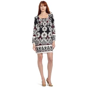 Tiana b printed jersey dress. this growing flowers with pop color is a great fit on all. long sleeve with button detail on sleeve and boarder print on hem.
