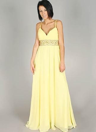 Dealing with a formal floor length gown in the completion of bright-colored chiffon material and has padded bodice enhanced with a pleated texture. Cross adorn the back and spaghetti straps empire waist with glittering jewelry from beads, beads and rhinestones and costume jewelry. Finished with hidden side zipper closure. Equipped with a scarf just for the match. small length formal dress from underarm: 52 inches. 100% polyester. Professional dry clean only. Made in the USA.
